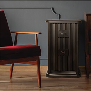 The Pedestal has over 2,700 5-star ratings on Amazon. It was also rated Best Whole House humidifier by Health.com. The Pedestal has a built-in humidistat for humidity control, quickly brings up the humidity level in your home, and is super easy to clean. But what makes it most unique is the decorative top insert that can be changed out with any 12"x12" tile to match your home. With the tile inserted, the Pedestal can be used as a table. It comes in two colors and you can buy an optional remote.