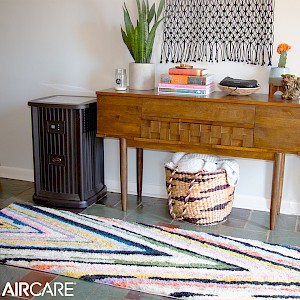 Humidifiers are beneficial year-round. That's why most AIRCARE evaporative models are made in various styles and colors, so you can leave them out and use them all the time. For this reason, the Pedestal comes in two warm earth tones, nutmeg (shown) and espresso. But what makes the Pedestal unique is that it functions like an end table. Its decorative top contains a 12 "x12" insert that can be swapped out with any other tile to match your home.